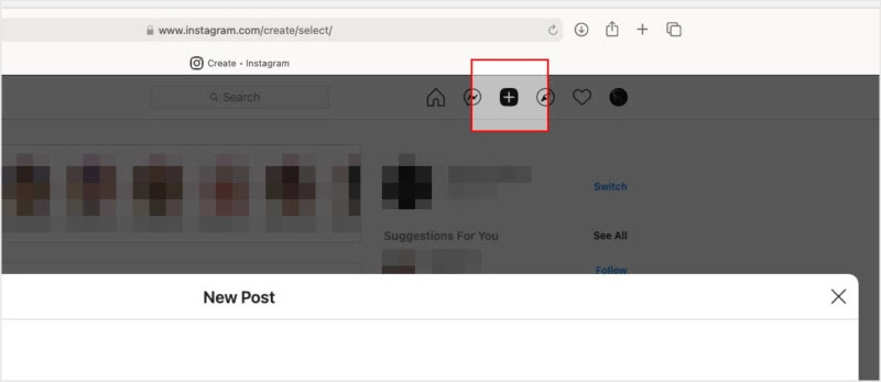 Se la pubblicazione sul desktop è stata abilitata per il tuo account, troverai una nuova icona "aggiungi" nella parte superiore del sito tra le icone dei messaggi diretti ed Esplora.
